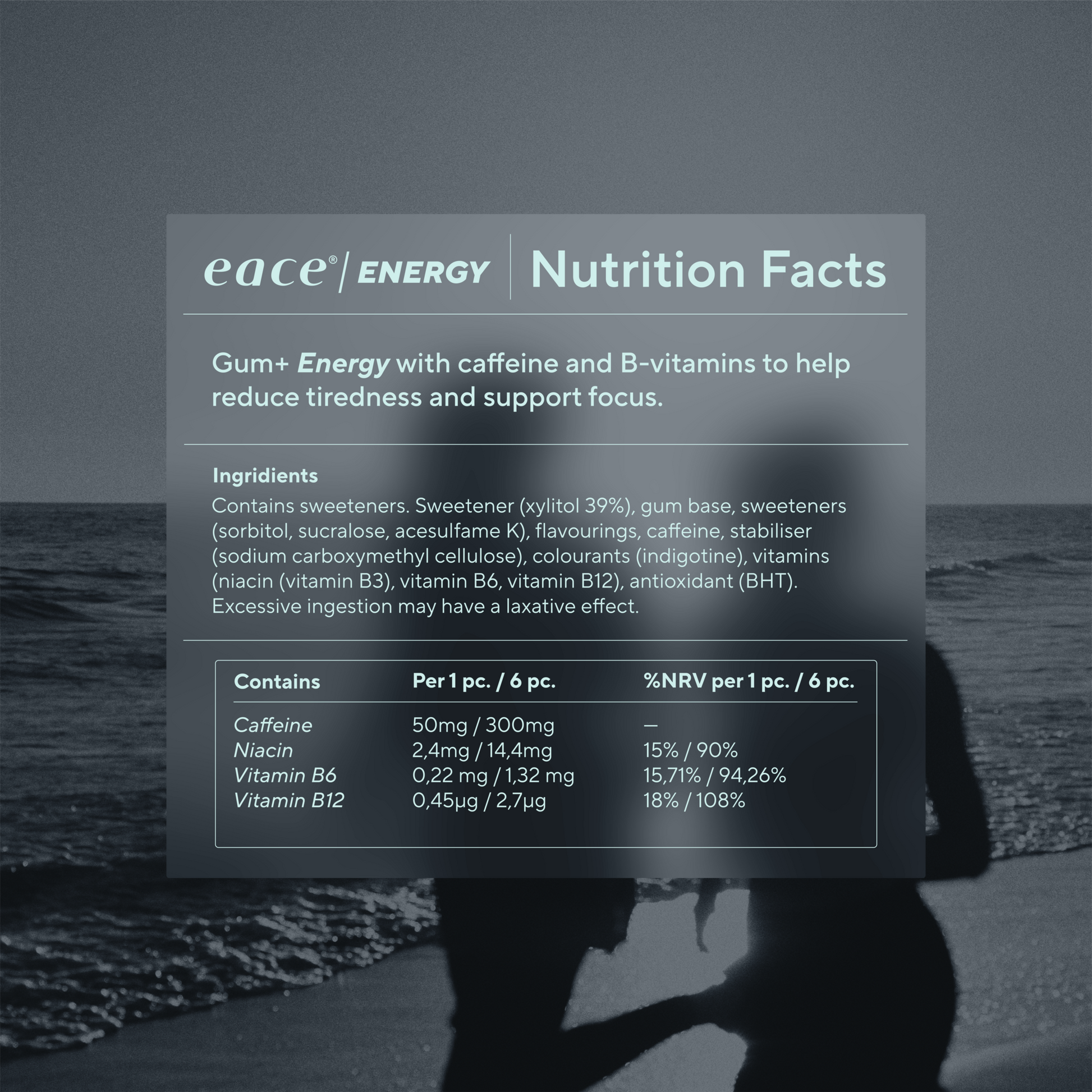 Kombinationen af B-vitaminer og koffein giver et effektivt energiboost. Der findes videnskabelige undersøgelser, der viser en Tmax (det tidspunkt, hvor den højeste koncentration forekommer i blodplasma) på 0,73 timer holdt op mod en Tmax på 1,42 timer for en kapsel indeholdende den samme dosis koffein - hvilket indikerer en bukal absorption af koffein – og dermed en hurtigere effekt end indtag via kapsler og energidrikke.